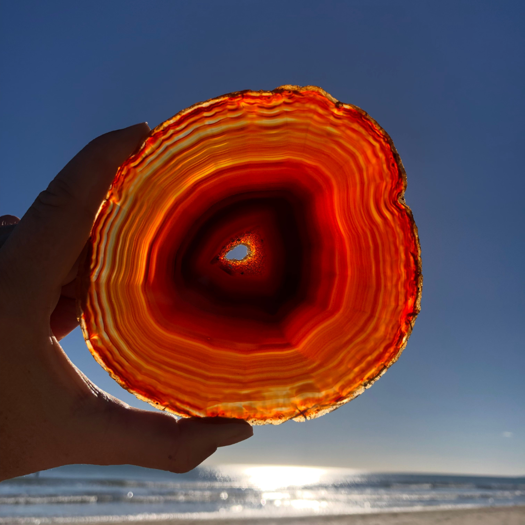 La cornaline est une agate rouge orangée, sa couleur rappelle les couchers de soleil, le feu incandescent, les fruits vitaminés.